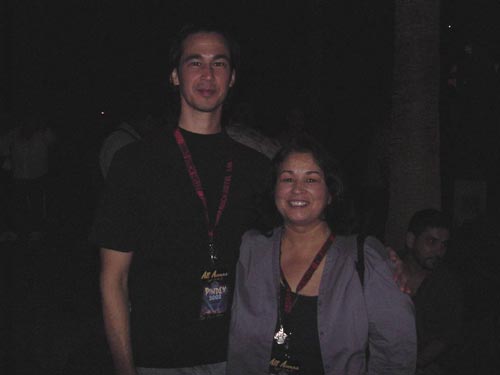 | Pindex 2002, It is, It was Pindex 2002 is now over, and what a GREAT time was had by all. This year had perhaps the biggest crowd of people in attendance since the event started in 1999. People were meeting and greeting, putting names to faces that before had only email addresses to signify them. Pins were flying all around the trading hall, changing hands like mad. It was a true pin frenzy. The activities started on Tuesday with what turned out to be a well above average line of attendees waiting for the brand new Pindex retail items to go on sale at 3pm. At it's height, the line went from the front of the retail store and reached down past Pink Taco. This was the first year that a line for the retail store has ever formed. It was Pindex madness!!!!! At the same time all this was happening, Nicole and I started signing people up at the trading hall. In those few hours I saw many familiar collectors and met a bunch of new ones. That evening was the kickoff greeting party at the HRH Beach Club by the pool. It was a warm and slightly humid night, but everything went absolutely wonderful. Food was a plenty, drinks were a flowing, and people were meetin' and greetin'. A better night could not be found anywhere in Vegas. Check out these pictures from the party.